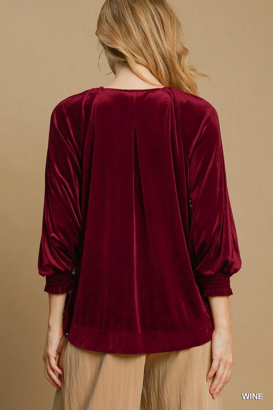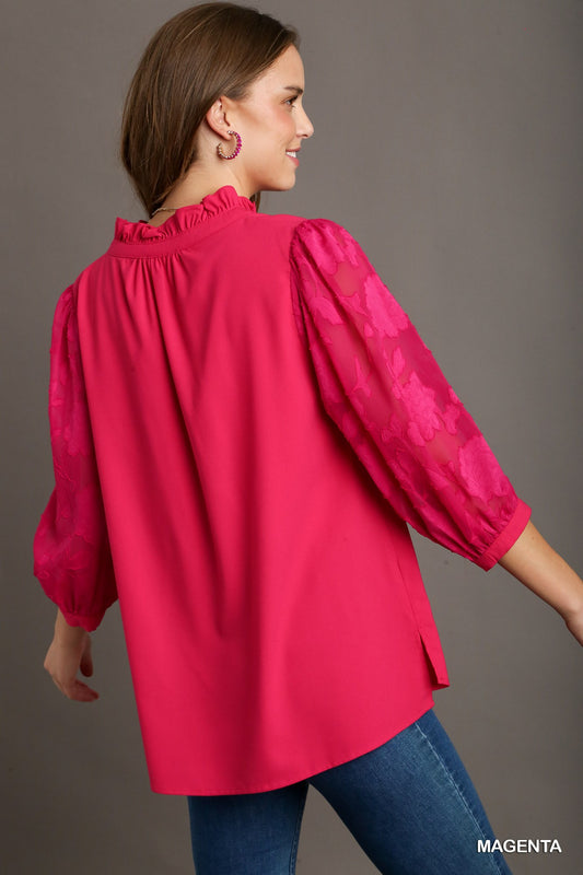 Umgee USA 3/4 Sheer Sleeve Blouse