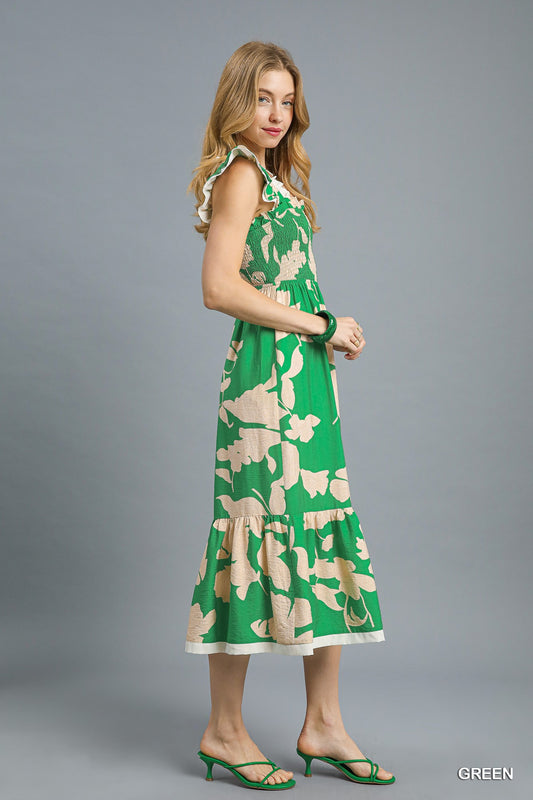 Umgee Ruffle Sleeve Smocked Midi Dress