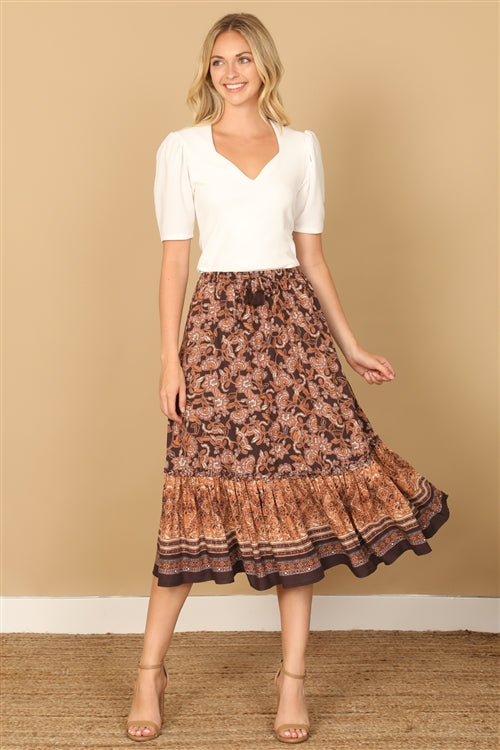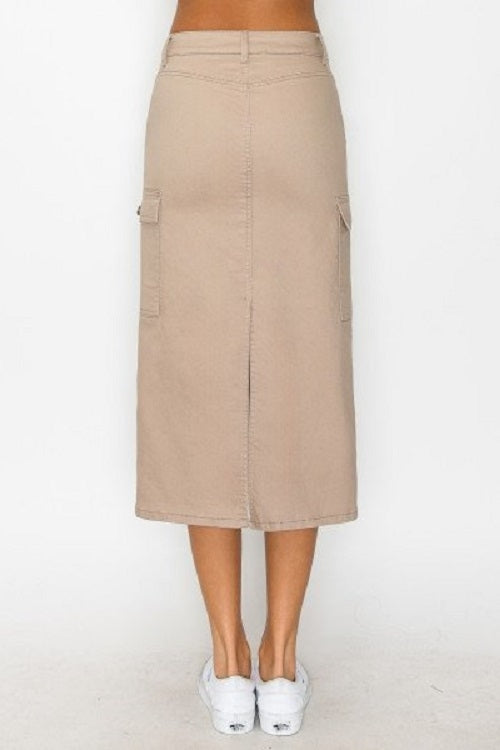 High Waist With Mock Hook & Eye Strip Midi Pencil Skirt