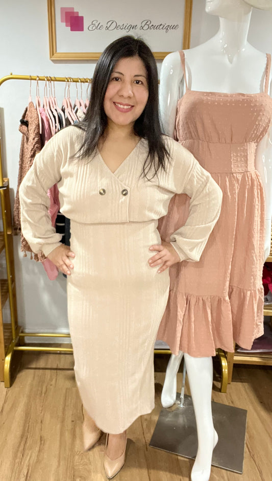 High Waist With Mock Hook & Eye Strip Midi Pencil Skirt
