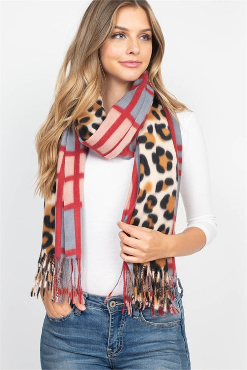 LEOPARD PRINT DUAL DESIGN FRINGE SCARF
